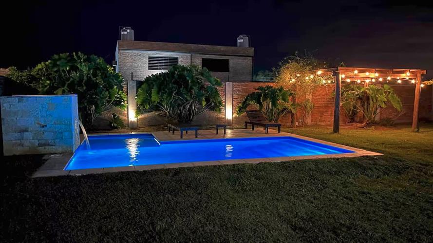 ALQUILER - JARDINES DE LA COSTA - ARROYO LEYES. Hermosa propiedad desarrollada sobre un lote de 800m2 aprox. La propiedad cuenta con una galería equipada con asador y espacio para estacionamiento vehicular. Al acceder, se encuentra un amplio comedor integrado con la cocina. Adicionalmente, el interior dispone de tres habitaciones y dos baños. En el exterior, la propiedad ofrece un jardín con césped, piscina y un baño adicional. Se encuentra lista para ser habitada. Totalmente amoblada. Consultar precio. Se deja constancia que el inmueble tambien se ofrece para venta. Si queres coordinar una visita, dejanos un mensaje con tu nombre completo y un telefono.