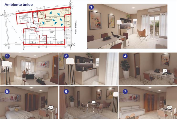 ECO URQUIZA - "URQUIZA 1155" 5 DTOS DE 1 DORMITORIO Y 5 DTOS MONOAMBIENTES. Se encuentran ubicados en calle Urquiza 1155, en pleno corazon de la ciudad de Santa Fe. Su implantación es estratégica, a pocos minutos del casco histórico, lo que le otorga una conexión directa con el pasado cultural y arquitectónico de la ciudad. CARACTERISTICAS: Cuenta con 5 pisos, esta diseñado para satisfacer todas las necesidades de la vida moderna. En su oferta se incluyen 5 monoambientes con balcón que pueden ser fácilmente adaptados como oficinas, y 5 departamentos de 1 dormitorio también con balcón. DIFERENCIALES: Construcción Premium, terminaciones de alta calidad Aberturas DVH o TVH Pisos de porcelanato Seguridad monitorizada, cámaras y cerraduras electrónicas Mobiliario de cocina completo Cortinados incluidos Equipos de aire acondicionados frio-calor Grifería y sanitarios Pacific Trading Sanitarios completos. Muebles de placard embutidos Paneles solares. MONOAMBIENTES: 27.22m2 - BALCON 4.40m2 DTO 1 DORMITORIO: 37.41m2 - BALCON 5.90M2 ENTREGA SEPTIEMBRE 2026